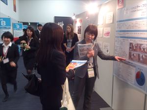 今回、同社の三橋郁美さんが発表したテーマは『パンフェノンシャンプー・プロテハート(抗酸化作用)における皮膚炎に対する効果』。動物病院でもトリミング・サロンでも扱うことの多い皮膚疾患の臨床データ発表とあって、熱心な獣医師の先生や看護士さんの質問もあり注目を集めていました。